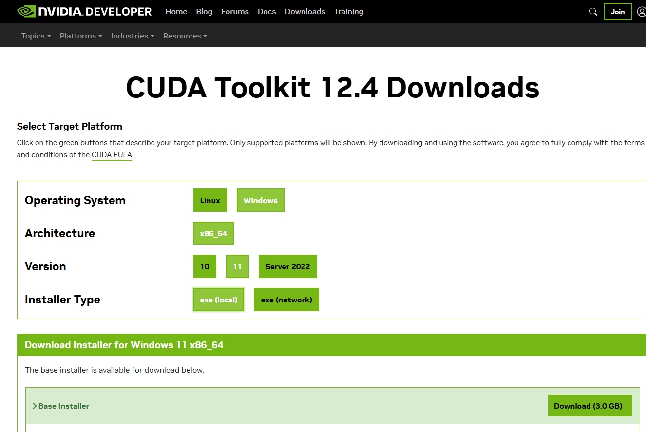 这里我选了12.4 与Pytorch对应起来。