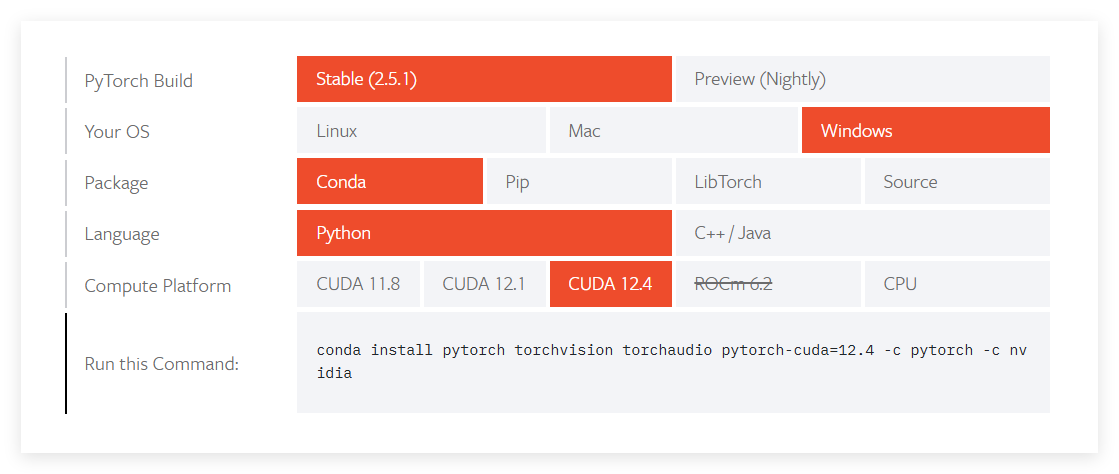 Pytorch的安装:https://pytorch.org/get-started/locally/