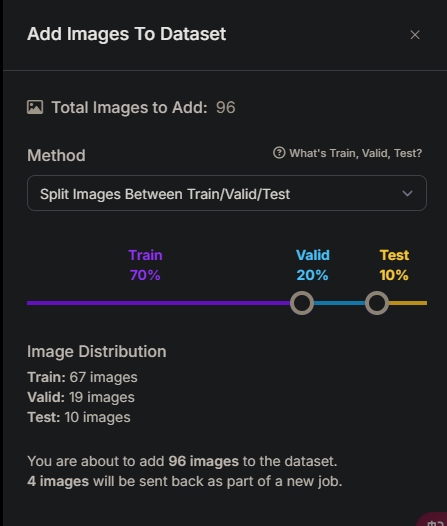 标注完成后,选择分别用于训练,验证,以及测试的比例。